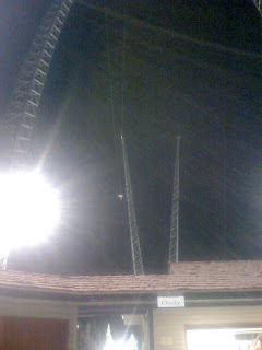 This is the boys on the Skycoaster as they were being dropped. They are the tiny white dot in the sky. I was standing on the ground all by myself screaming at this point. :)